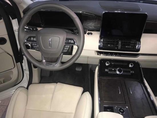 2018 款林肯领航员新款三幅式多功能方向盘带加热功能,真皮包裹方向盘兼具温润触感与典雅质感,三幅式设计令操控更加得心应手,在尊崇气息之上平添一分动感魅 力。真皮部分可在短时间内加热,即便在寒冷的天气状况下,也能保持对温度的掌控感。内饰豪华气派,做工精细。车内大量皮质和实木材覆盖,让人即刻尊享定制 体验。新款林肯领航员采用12英寸全液晶的仪表盘,悬浮式显示屏,科技感十足。