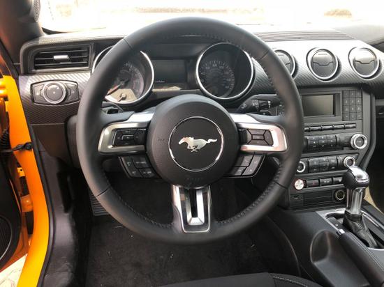 新款福特野马2.3T采用了全新三辐式多功能运动方向盘,布局设计让驾驶者感觉如同置身于飞机驾驶舱一般。不仅仅是舒适。软质仪表台不会粗糙的手感,真皮方向盘、真皮座椅都可以用细腻来形容。中控台上每一个按键,每一个旋钮都值得一赞,没有哪个会有生涩感,能颠覆你对美国车的印象。
