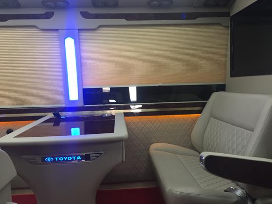丰田考斯特改装商务车在内在的质量上以及外观的美观上都充分体现了作商务用车以及政府接待用车的最佳选择。丰田考斯特改装商务车在内饰设计的改装上注重舒适性和实用性的结合,丰田考斯特改装商务车在座椅的设计上特别注重符合使用的用途和个人的喜好,从座椅的数量到室内的座椅的布局,以及座椅的种类和座椅质量的选择,丰田考斯特改装商务车都可以根据我们自己的需要完成设计。