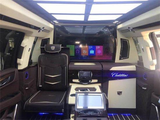 内饰方面:18款凯迪拉克凯雷德总统一号内饰的设计绝对是奢华至知,奢华敢为,整体的主题效果贯穿其中,仪表盘、触摸屏、多功能方向盘以及三种不同风格的木饰搭配,绝对是吸睛手笔。内部配备了真皮桃木内饰,高级地毯,高级豪华的异域吧台,带来梦一般的境界。用料考究,凯迪拉克加长总统一号 顶级真皮面料搭配实木材质,出自名家手工的工艺工序,艺术品的称号当之无愧。