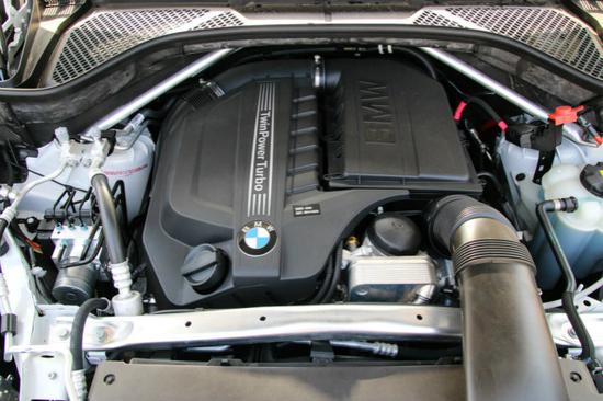 由于有Coupe因素在里面,导致X6的后备箱空间不像其前辈X5那样大,但依然能够达到570L,对于日常使用还是够用的,有需要时还可以拓展成为1450L的大行李箱。值得一提的是X6的后备箱开启角度可以通过i-Drive系统进行五级调节,在空间狭小地区依然可以顺利开启,非常人性化。此次实拍的是X6Xdrive50i,搭载了一台4.4LV8双涡轮增加发动机,最大功率300Kw,最大扭矩600N·m,按照原来的命名方式,应该是44i,由于这台发动机在参数和性能上均与5.0L发动机相当,根据新的命名方式得以称之为50i。与之搭配的是6速手自一体变速器,无论是在动力传递上还是运转平顺性上,都表现的十分出色。这辆车最大的卖点是匹配了宝马的动态驱动力分配系统+智能全轮驱动(DynamicPerformanceControl+Xdrive),在默认状态下驱动力分配比例为前:后4:6,并且动力可以在前后轮之间进行无级切换,保障动力能在对的时间应用到对的位置,而这一切的反应时间不过0.1S。宝马X6的这套系统可以在车辆无牵引力时依然可以对车辆进行控制,进一步提高车辆行驶的安全性。