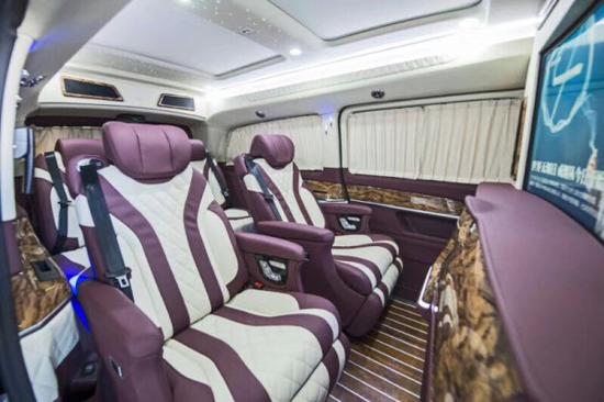 奔驰V260L简约红色版,后排座椅可放平,形成电动沙发床,可以随时休息的空间,座椅布局空间非常宽裕,旅途中更舒适放松。