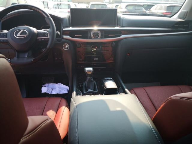 19款中东版雷克萨斯LX570 限量版S(大包围):雷达测距、抬头显示、换挡拨片、铝制行李架、限量包(前后大包围、黑色大中网、钢制油门/刹车脚踏板、车门迎宾灯)、S限量花纹脚垫、后包围镀铬、镀铬尾喉、外置拖车钩、138升双油箱、遥控启动、车身防擦条、副驾驶灭火器、流水转向灯、金属漆、Logo地射灯、21轮、冰箱、天窗、智能卡、电眼、环影、后娱、底盘升降、前座椅通风加热(真皮)、导航、多功能桃木真皮方向盘、桃木内饰、航空照明脚踏、LED 氙灯、大灯清洗、迎宾灯、四区空调、三排电动、电尾门、ACC自适应巡航、后座椅通风、车道保持、并道辅助、二排遮阳帘、马克莱文森音响、后牌照盖带LED灯…
