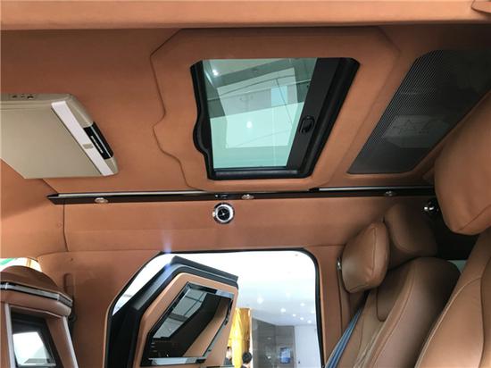 3580mm的超长轴距使得乔治巴顿能容纳下任何创新性的设计,此款前后舱就被一台40寸卫星电视隔断,通过车顶部的卫星接收装置,可收看多个电视节目,显示效果也十分不错,增加娱乐性的同时,更保护了后舱“老大”的隐私。