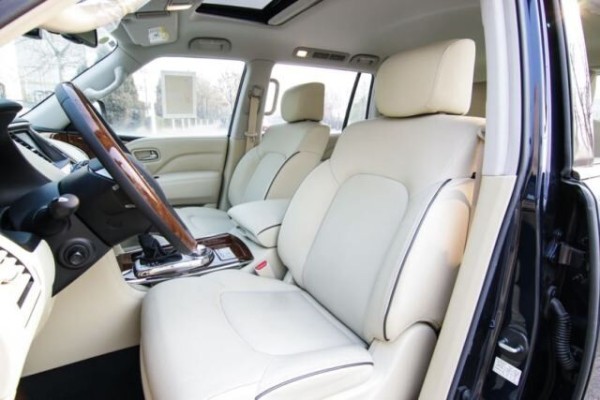 18款英菲尼迪QX80内饰搭配实木装饰,显示了车辆的好换气息。中控台运用了大量的皮质包裹,做工出色。实木包裹的方向盘带有加热功能,支持四方向电动调节,手感一流,多功能按键功能强大。