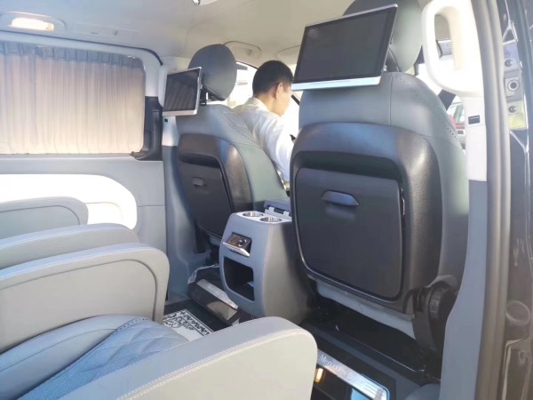 奔驰V250工作台超大屏显示触摸屏,真皮包覆方向盘进口缅甸胡桃木17手工工艺打磨的工作台,使其更有质感。奔驰V250主副驾驶座椅真皮包覆,门板整体真皮包覆。整洁舒适的驾驶舱,配备了超大高清导航屏,乘客舱配备了、一键自动按摩、车载冰箱、触摸控制屏、通风等智能化生活工具。