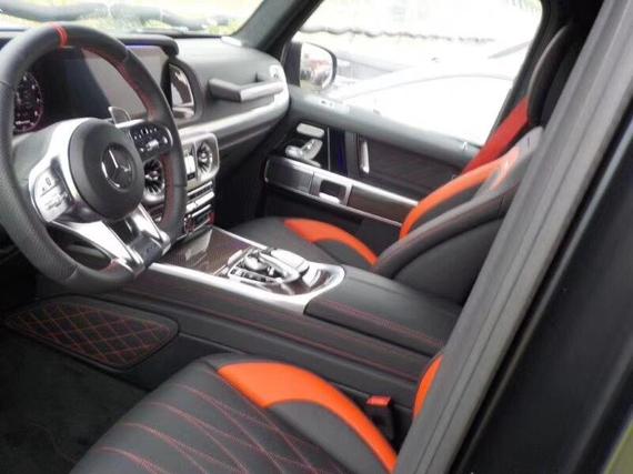 2019款奔驰G63 (配置|询价)内饰保留了新G500 (配置|询价)的整体设计,除配色差异外,新车还换装了全新造型的平底式AMG运动方向盘,其两侧配以打孔皮质包裹,下部镀铬装饰的造型也与新G500明显不同,看上去十分战斗。此外,全液晶仪表盘+中控大屏的双12.3英寸屏幕设计在新车上也没有缺席,营造出了浓郁的科技感。