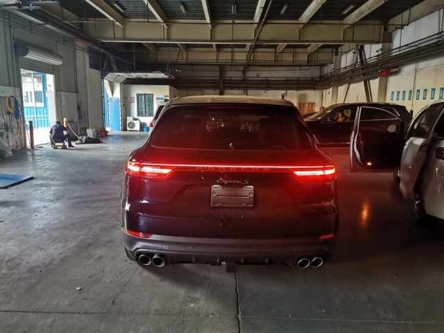 保时捷卡宴新车在尾部方面在一些细节上进行了升级,尾灯组变得更加狭长了,内部也是采用了全LED光源,这个贯穿式尾灯在夜间点亮后还是有相当高的辨识度的。新的尾灯造型也做出了细微改变,后保险杠增加了底部扩散器。