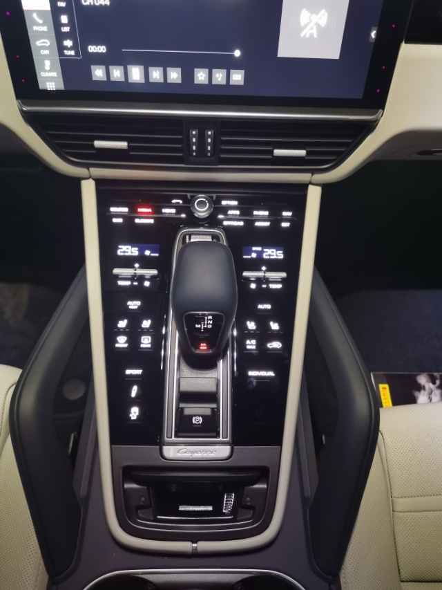 在内部,Cayenne进行了重大的重新设计。数字双7英寸的仪表显示屏可以轻松地阅览和获取信息,并且具有高度可配置性。不过12.3英寸的触摸屏才是重头戏。很多物理按钮都消失了,取而代之的是带有触觉反馈的变速杆周围的按钮。这是你可以触摸到的最近的物理按钮,大部分操作可以通过触摸屏完成。