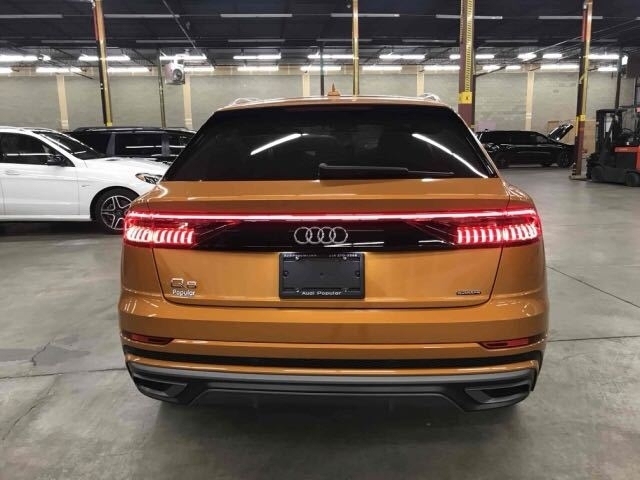 19款 加版 奥迪Q8 科技版 橘黄/黑 电动全景天窗 高清矩阵LED大灯 电尾 智能卡 抬头显示 并道辅助 环影 电吸 四驱空调 方向盘加热 前座椅加热通风 后座椅加热 自适应悬架 无框玻璃 SLINE外观包 21寸轮毂 翻毛皮内顶 BO音响