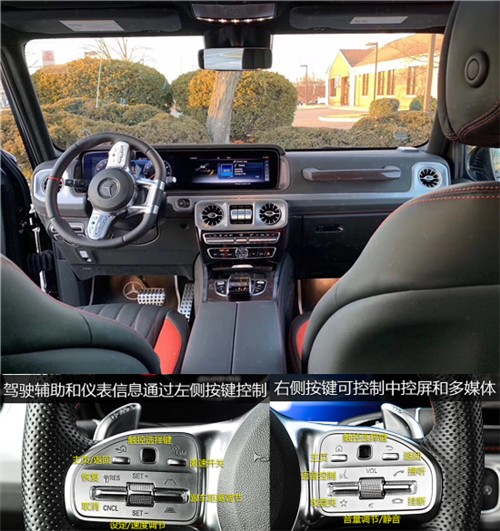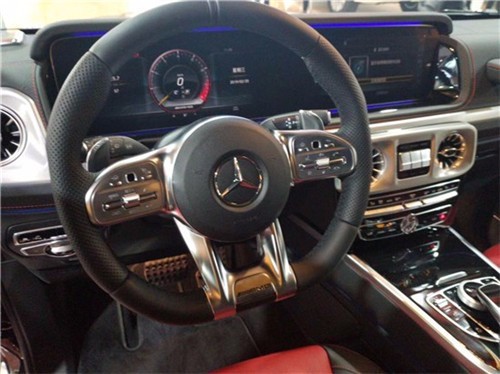 内饰设计:档次、质感和科技配置都明显提升全新奔驰G级的内饰相比老款有了明显的提升,采用了奔驰最新的双屏幕式设计,全液晶仪表盘和中控台屏幕都达到12.3英寸。同时内饰质感和工艺都有了很大的进步。较之于现款车型,它的内饰发生了巨大的变化,融入了不少现款奔驰S级 (配置|询价)、E级的设计元素,从而变得更加豪华,而家族式的连屏设计则凸显了车内的科技感。当然了,经典的“三把锁”按键自然不会缺失,并且设置在中控台最为显眼的位置。