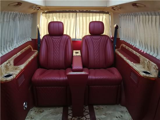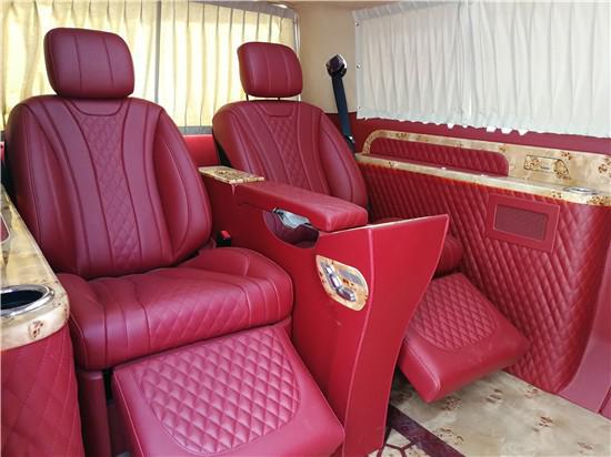 2019款进口大众凯路威T6贵宾舱主座迈巴赫S级航空首长席座椅,带座椅加热、通风、气动按摩、一键展开呈135°人体工程学睡眠角度/一键收回、10向电动调节、调节记忆等功能,礼遇总裁极致之选,脚下进口金丝楠木豪华地板,在国外皆以美金来衡量价值,视觉冲击效果极佳,地板拼花为激光雕刻而成,极具现代奢华感。