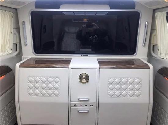 奔驰威霆改装迈巴赫V280顶级百万豪车。全新V级车气质雍容_商务人士的新选择 电视的下方还有两个隐藏式的座椅,表面看起来这款奔驰威霆是四座版车型,实际它是6座,改装后的四座商务车一般都有两个车辆合格证,一个是厂家发的,另一个则是改装厂发的,后期用的是改装厂后发的合格证上牌,这一点操作起来还是比较轻松的。