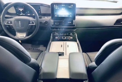 林肯领航员新款三幅式多功能方向盘带加热功能,真皮包裹方向盘兼具温润触感与典雅质感,三幅式设计令操控更加得心应手,在尊崇气息之上平添一分动感魅力。真皮部分可在短时间内加热,即便在寒冷的天气状况下,也能保持对温度的掌控感。内饰豪华气派,做工精细。车内大量皮质和实木材覆盖,让人即刻尊享定制体验。新款林肯领航员采用12英寸全液晶的仪表盘,悬浮式显示屏,科技感十足。