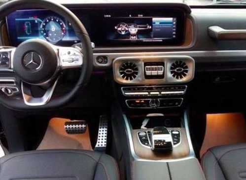 19款奔驰G500内饰豪华气派,卓越的品质和精致的工艺在车内体现得淋漓尽致,对细节的精益求精是内饰设计中的重要原则。车内采用深色调与桃木装饰,黑色真皮运动座椅非常舒适,方向盘以高档真皮包裹装饰,触感极其细腻。配有桃木装饰的操控台,稳重大气,同时提高了整体的质感。各种功能按钮应有尽有,丝毫不次于豪华轿车的功能。 内饰焕然一新,虽然还是以平直的线条为主,用料和做工都能令人满意。跟奔驰的很多其他车型一样,它也用上了双12.3英寸屏幕,科技感很强。三把差速锁按键依旧布置在中控台的正中间,这是奔驰G级的灵魂所在。19款奔驰G500经过全新改款中控大屏和仪表部分也采用了科技感满满的双12.3寸巨幕,豪华感和科技感大大提升。