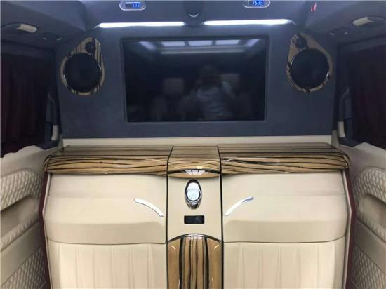 奔驰改装隐藏六座超高配置美杜莎。精致,舒适,娱乐设备应有尽有,颜色搭配可根据个人喜好随意更改。娱乐影音配备齐全,前舱蓝光DVD影碟机,美国BOSE音响,吸顶高清液晶电视,往下翻开,打开电视,最新热点、时尚资讯随时掌握。GPS全球卫星导航系统带倒车影像,驾驶室独立压缩式冰箱,奔驰维特斯商务车每一项配套紧跟时代要求,提升整车的使用价值。