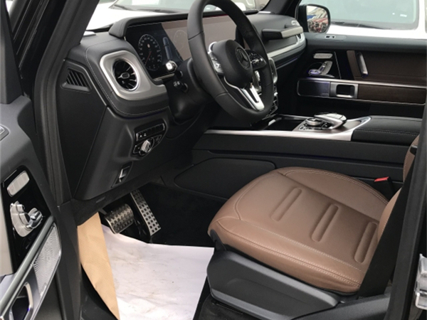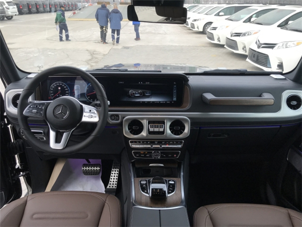 19款奔驰G500内饰豪华气派,卓越的品质和精致的工艺在车内体现得淋漓尽致,对细节的精益求精是内饰设计中的重要原则。车内采用深色调与桃木装饰,黑色真皮动座椅非常舒适,方向盘以高档真皮包裹装饰,触感极其细腻。配有桃木装饰的操控台,稳重大气,同时提高了整体的质感。各种功能按钮应有尽有,丝毫不次于豪华轿车的功能。 内饰焕然一新,虽然还是以平直的线条为主,但完全没 了上一代车型那种粗糙的感觉了,用料和做工都能令人满意。跟奔驰的很多其他车型一样,它也用上了双12.3英寸屏幕,科技感很强。三把差速锁按键依旧布置在中控台的正中间,这是奔驰G级的灵魂所在。19款奔驰G500经过全新改款中控大屏和仪表部分也采用了科技感满满的双12.3寸巨幕,空调出风口也改为重新设计的炮筒式,豪华感和科技感大大提升。