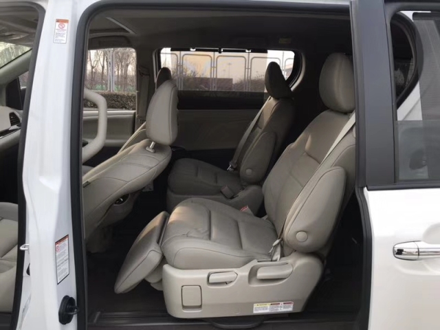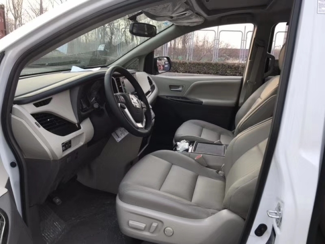 19款丰田塞纳内部空间非常大,充分发挥了MPV的优势。 座椅全部采用双色真皮,第二排座椅的腿部支撑,放倒第三排座椅,加上腿部支撑,完全变成了两张摇篮床,让长途旅行多了一份舒适。宽敞舒适后座空间,配上该车安全稳定的行驶系统,保证途中也能舒适地谈上生意。