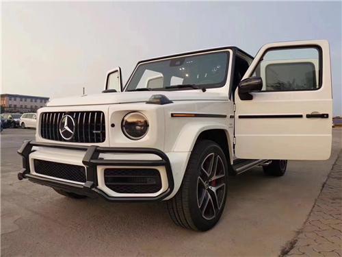 19款奔驰G63AMG亮点总结:1。尺寸相比老款有了明显提升,轴距增加40mm;2。内饰全面升级,既有越野车的粗犷,又充满了科技感;3。越野能力相比老款有了明显的提升,变得更加强大;4。公路表现值得称赞,日常使用也足够舒适豪华。外观设计:粗犷中增添了几分精致全新奔驰G级 (配置|询价)仍然保持专业越野车的定位,同时采用了传统的“方盒子”造型设计,但是细节部分变得更加细腻。新车型尺寸有了明显的提升,长宽高分别为4817×1969×2187mm,轴距为2890mm