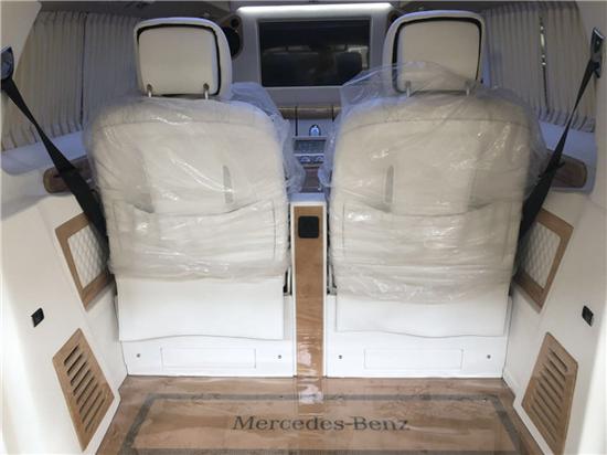 奔驰V (配置|询价)260商务车迈巴赫版改装隔断六座全车采用真皮包覆,缝线细腻,柚木地板覆盖,处处体现了匠心之处。顶部搭载可调节的氛围灯、壁灯等,时尚的温馨感,与空调的造型排列,很有层次感。驾驶舱中间人性化的设计了冰箱。奔驰V260运用平直坚挺的线条绘制出整车的轮毂,整车造型很低调沉稳,奔驰V260商务车迈巴赫版改装隔断六座优雅设计示人,也必将成为又一经典之作。5370*1928*2080的车身尺寸。