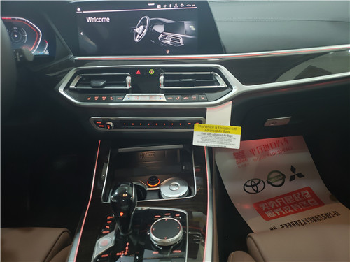 19款宝马X7内饰部分,宝马X7采用最新家族式设计语言,使用大量真皮、木纹饰板进行包裹。配备12.3英寸带有注意力检测的全液晶仪表和12.3英寸悬浮式触控显示屏。空调出风口与温度显示屏、实体功能按键结合在同一区域,并使用银色装饰条进行点缀。下方盖板下方为带有加热、制冷功能的杯架,全新的水晶电子挡杆造型十分精致,进一步提升了车内的豪华氛围。