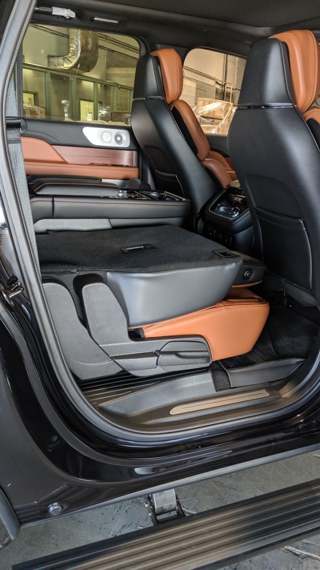 19款林肯领航员的第三排空间比很多7座MPV还要好。身高1.85米的体验者坐到第三排,无论头部还是腿部都很有富余的空间。