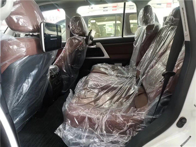 丰田酷路泽5700顶配版本带有真皮打孔座椅和前座椅通风以及后排娱乐系统,音响系统是JBL,底盘升降控制和差速锁和地形蠕行模式在变速器面板可以控制。中东版兰德酷路泽5700全系带有车载冰箱,这个配置是一般车型所没有的,实用性极强。