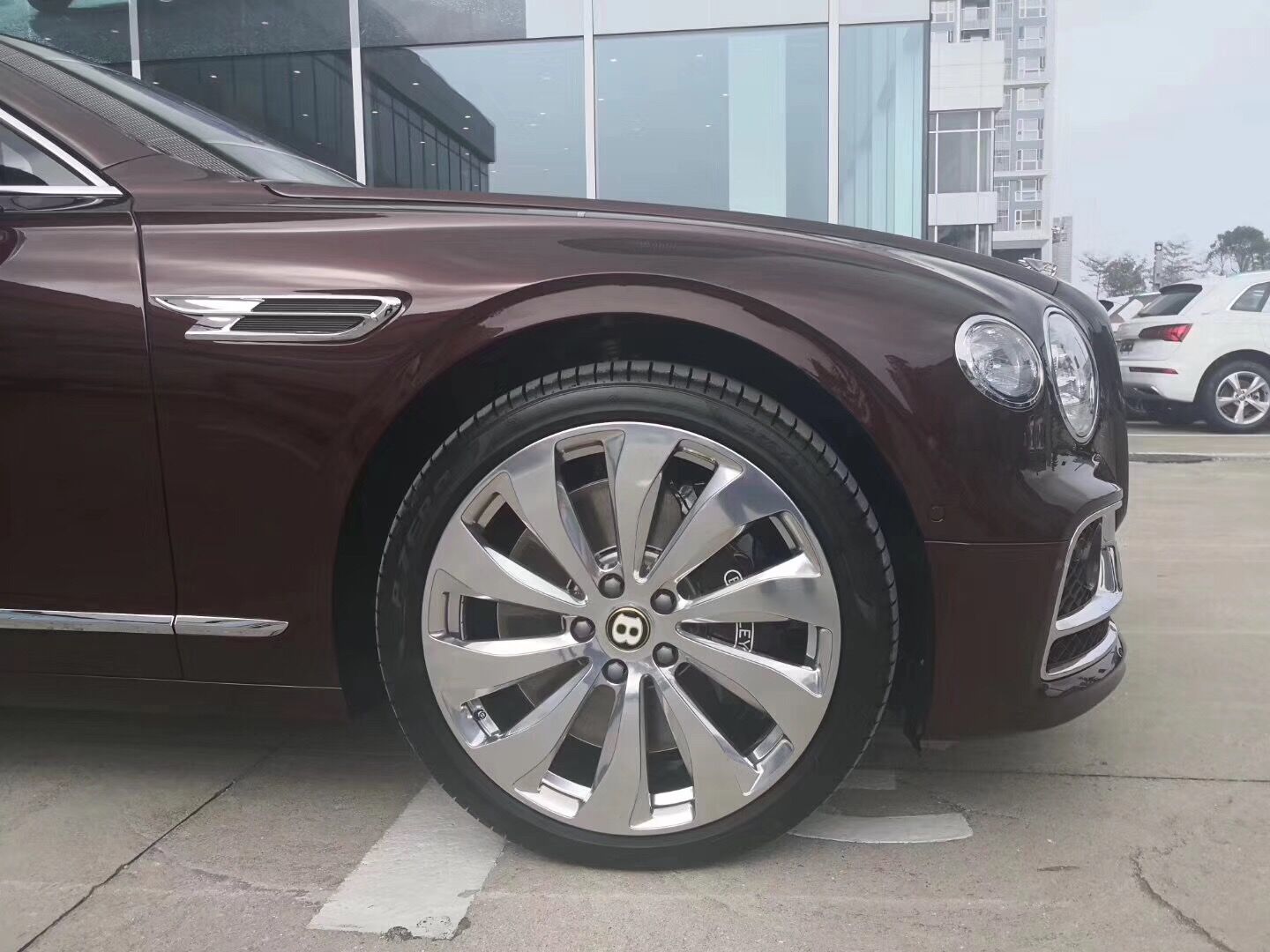 宾利飞驰外观变化不大,但从整体来看其外观更加运动、现代,并且线条感增强。翼子板处增加了散热孔,凸显出该车强悍的发动机性能。前大灯组、进气格栅、保险杠等多处都进行了微调和升级,整车更为大气。宾利飞驰欧规采用了更矮、更宽的外观,LED大灯分列于更加直立的镀铬格栅左右,前格栅下面的进气口位置更低,宽度达到车身全宽。超豪华轿车每一个细枝末节都散发着纯正宾利不可言传的阳刚之气,短捷的前悬设计加上修长的引擎上盖,展现出车头既优雅又锐利的静态感受。