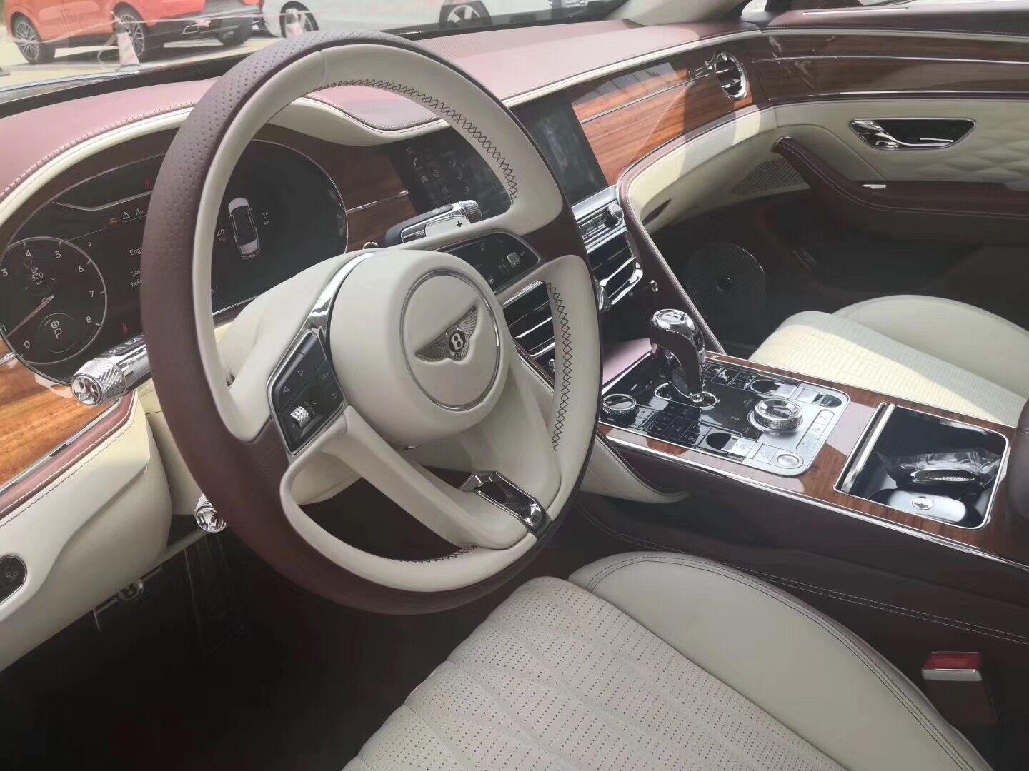 宾利飞驰V8S真皮包裹的方向盘给予驾驶者牢靠把控的感觉,在持续高速条件下容易操控、持久耐用。整体内饰均为手工打造,更是将古典与现代很好的融合。600个全新零件、 10平米的天然胡桃木以及上等的牛皮,都是工人精心挑选,它的豪华来得如此自然,当您手握方向盘时,脑海里可曾想象这复杂的制作工艺需要15个小时来缝制。