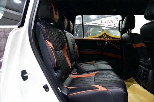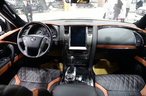 19款日产途乐Y62中控部分的设计比较具有豪华感,标准日系豪华车的风格,BOSE音响是很多中高端车所选用的,音响效果不会让你失望。方向盘为电动调节,左侧有很多控制键,比如大灯清洗、反光镜调节等等。中控风格保持了日系车一贯的细腻,不过手套箱并没有包裹绒面有点遗憾。中东版尼桑途乐Y62中控部分的设计比较具有豪华感,标准日系豪华车的风格,BOSE音响是很多中高端车所选用的,音响效果不会让你失望。