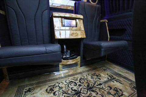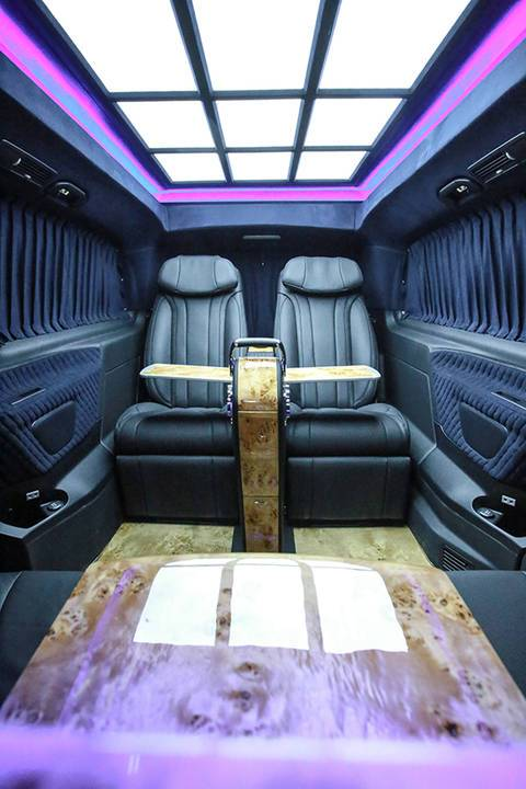 新款奔驰威霆 (配置|询价)豪华对坐改装后内饰奢华绚丽,立刻就会被它的奢华绚丽而降服,奔驰威霆中心由一台超大液晶升降电视(32寸)及多功用吧台及日本进口健伍音响家庭影院组合组成,整车环保真皮包裹,游艇级柚木地板铺设,奢华感无处不在。全部选用真皮制作,奢华木饰装点,带有按摩加热通风功用。独立航空座椅装置进口首席航空座椅,加热通风按摩功用完全,最大限度的减缓您的乘车疲乏。八向电动调理:电动头枕,电动腿托,前后电动调理,电动靠背调理。(可电动展平,形成一张舒适的沙发床)。