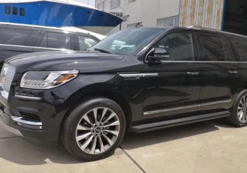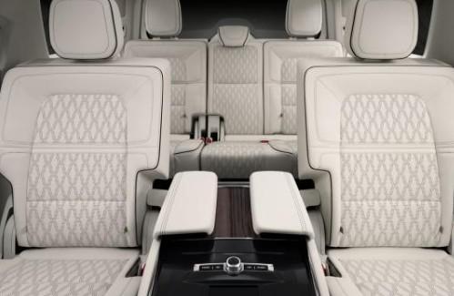 全新领航员的前脸首次采用了林肯家族全新的设计语言,星辉式前格栅搭配王冠式LED自适应前大灯,大气稳重。大灯的造型、车窗的轮廓、车顶的线条、车侧的腰线、甚至车身上的镀铬饰条,都是以“平直”为基准,方正间更显霸气。车窗与车身的比例呈现最佳的视觉效果,配合22英寸的大尺寸车轮,身材的“庞大”不会给人笨重的感觉。我们这次体验的是总统系列的全新领航员,风火轮造型的轮圈与Navigator概念车保持了同款。