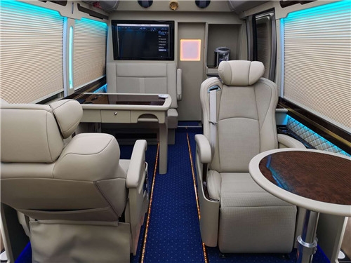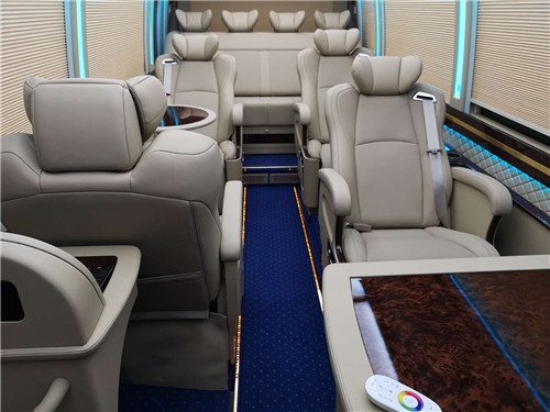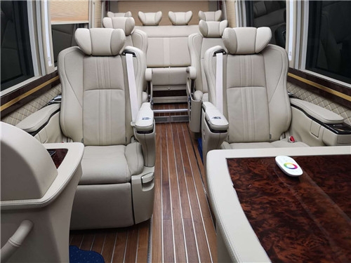 丰田考斯特改装商务车在内饰的设计上有着许多独特的设计,车内的座椅可以是真皮座椅,航空首长席以及原装进口的埃尔法 (配置|询价)座椅。座椅的真皮的材质有着不同的档次,真皮的颜色也有白色,米白色和棕色的区别。