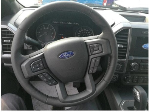 福特F150车内配备标准独特的皮革和布艺装饰的座椅,驾驶员侧的电动十向调节。这些座椅同时具备记忆功能。中央控制区搭配了触控式显示屏,其下方则是多媒体控制区及空调面板,采用旋钮+物理按键的组合。中控功能区域可分为三个小控制区,最上端为音响控制及导航控制,中间为收音机调节控制,最低端为空调及座椅加热控制。
