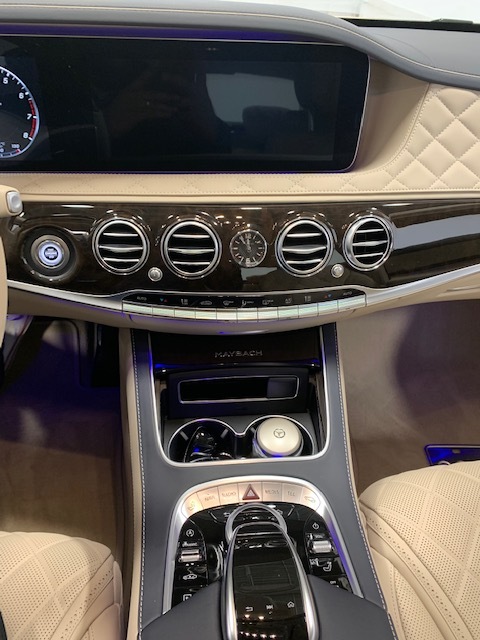 内饰。新一代梅赛德斯-迈巴赫S级轿车的车主通常会坐在后排,与之对应的是后排左右两侧标配的行政座椅。借助特殊的调节系统,后排座椅提供了超乎寻常的独特舒适感。值得一提的是,在腿部空间和座椅位置不变的情况下,靠背可单独调节。同样全系标配的是后排腿部空间扩展组件,通过对系统的调节,右侧后排座椅在腿部空间方面比常规座椅的最大位置还要多出77毫米。后排座椅功能均通过车门上经典的梅赛德斯-奔驰方式的控制板来操作。当然,后排中央扶手中带有两个杯座、多处储物空间及木饰。