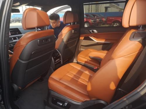 19款宝马X7座椅方面:X7标配7座座椅,2+3+2的布局,中间两个独立座椅是选装件,在功能方面,全车座椅标配座椅加热,前排座椅可选装通风和按摩。第三排座椅也是电动 调节。