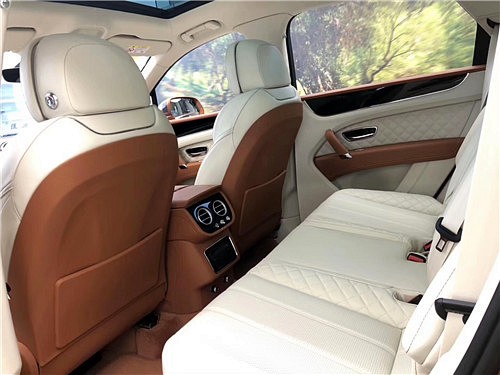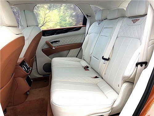 来到后排,奢华的工艺依旧逐一体现,宽大的座椅舒适性表现如前排一样优越。空间方面给人的直观感受就是“够用”!添越的长*宽*高为5141*1998*1742mm,轴距2992mm,定位属于中大型SUV。座椅也非常灵活,靠背可按比例放倒,特殊情况下,可以一侧坐人,一侧拉东西,两不耽误,豪华且实用。