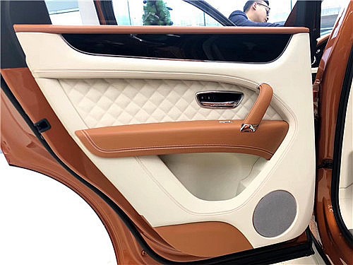 座椅和门板处采用常珍贵的木材和皮革打造奢华,纯手工缝制,加厚的菱形图案,视觉效果极其奢华。