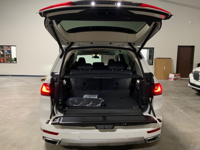整体来看,X7的内饰相比5系 (配置|询价)和7系 (配置|询价)并没有什么特别之处,只是在材质的应用上会比较特别。新车内饰保持了宝马目前最新的设计语言,“旗舰”身份更多体现在了材质搭配和对细节的雕琢上。如果一定要找出区别的话,那么与仪表台相连的中控屏,算是旗舰车型在宝马家族中的独享设计。方向盘造型与现款5系和7系如出一辙,哑光与白色缝线这两个设计元素让方向盘看起来典雅且低调。方向盘背后则是12.3英寸的全液晶仪表盘,虚拟时速/转速表打破了老款的物理圆环限制,提供了更好的观感。而与劳斯莱斯同款“星空”车顶又显得独出心裁。X7的尾门采用了上下开启式设计,使用便捷性不错。另外,如果选装了“舒适开启”这一配置,上、下尾厢盖还能够电动开闭。