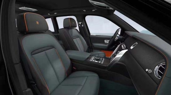2019款劳斯莱斯库里南 (配置|询价)SUV 6.75L 配置外漆:无尽黑,内饰:黑色/希瓦洛天空蓝/活力橙(特别编辑内饰风格),选装配置:羊羔毛地毯,前排通风座椅,前排按摩座椅,22寸全抛光轮毂,头枕刺绣(活力橙),滚边&缝线(活力橙),定制音响,后排影院(含桌板),单腰线(活力橙),全景天窗,着色仪表台缝线,真皮顶棚,开孔黑木,后排沙发座椅,驾驶辅助系统,发光脚踏-Cullinan,车门自动关闭,后排两侧窗帘,个性钥匙(活力橙色),不锈钢套件