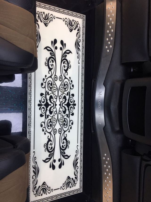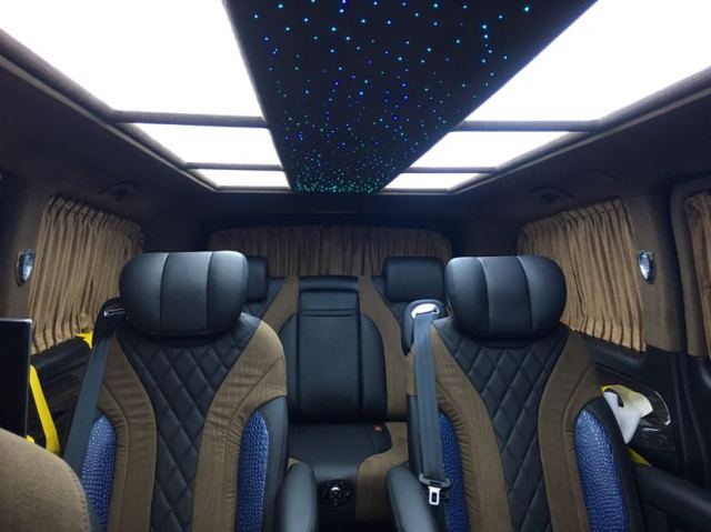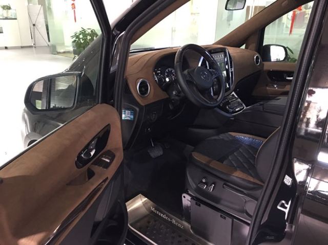 曜石黑金属漆 保险杠车身同色 电动加热外镜 高级头枕仪表台控制 背掀式尾门 电动门包(乘客侧电动门 驾驶员侧电动门) 多功能方向盘及高级显示包(皮革、镀铬多功能方向盘,多功能方向盘,4.2寸显屏) 真皮座椅+绣标 方向盘半桃木+真皮 大屏DVD导航 一体式冰箱储物柜 吸顶电视 中排豪华独立座椅(按摩、加热、脚拖)后排一体式沙发床含触屏控制 气氛灯脚踏 车底豪华游艇木地板 钻石顶 桃木内饰 可拆卸式移动办公桌 AMG大包围套件 LED大灯及LED尾灯