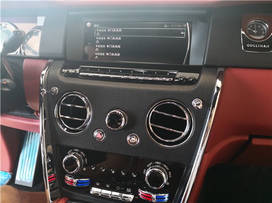 19款劳斯莱斯“库里南”内饰延续了全新幻影的设计风格,整体用料依旧一如既往的奢华高贵,中控采用大面积实木打造,配合方向盘上的实木点缀,既复古又豪华。中控屏幕尺寸为10.2英寸的屏幕,轻触车门把手上按键就可以电动关闭,四座版的后排控制台与前部是断开的,在狭窄环境停车后排乘客可以选择任意一侧下车。