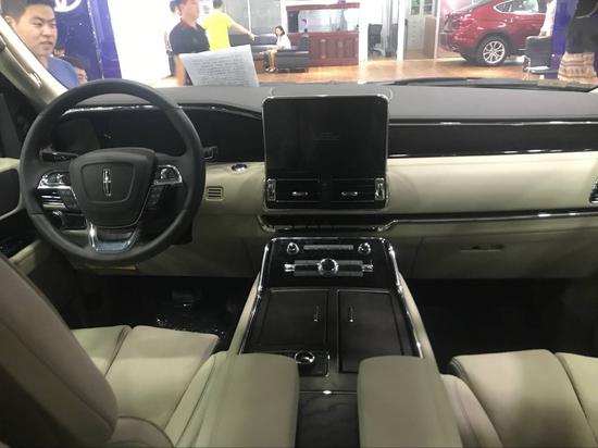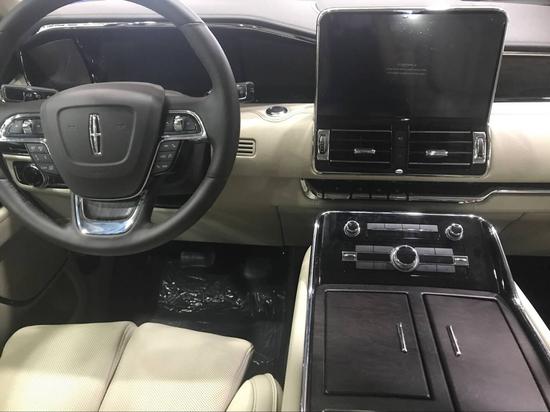 林肯特有的电子按键式换挡被设置在了中央出风口的下方,类似钢琴键式的设计更显精致,而且节省了空间。中控台并非整体贯穿式设计,操作区域和杯架、中央储物格整体呈航空母舰上飞机跑道的造型,胳膊置于扶手上就能轻松地进行各种操作。