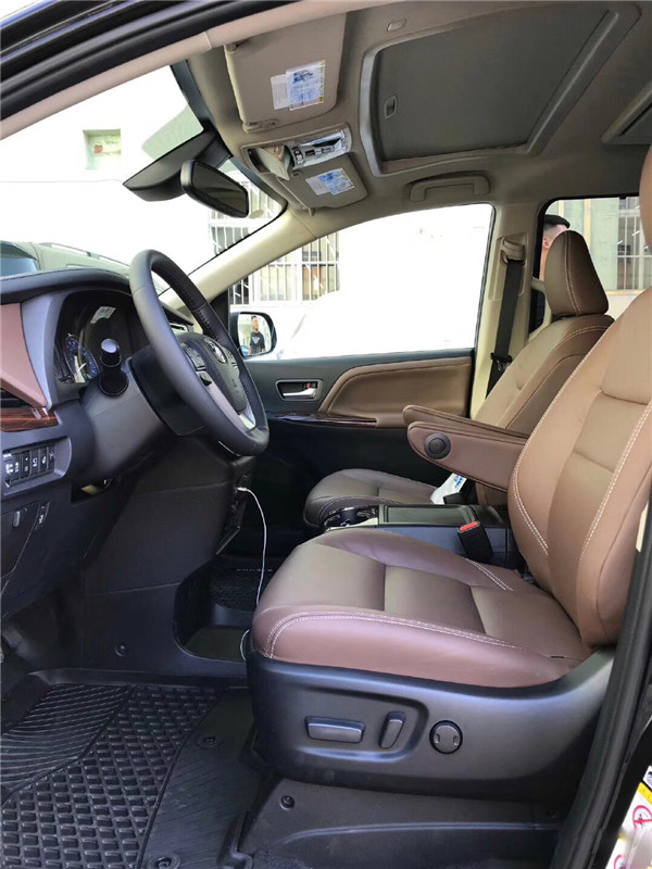 20款全新塞纳四驱 顶配 配置:3.5V6 八速手自一体 真皮 大屏 双天窗 吸顶DVD 桃木内饰 JBL音响 电动侧门 电尾门 倒影 双电动座椅 行李架 隐私玻璃遮阳帘 中央储物箱 多功能方向盘 雾灯 光感 氙灯 自动空调 电动折叠外后视镜 并道辅助 后视镜加热 前座椅加热 行车电脑小屏 前后电眼 智能卡 一键启动 胎压感应 定速巡航 防爆轮胎 10幅轮毂 18轮 方向盘加热 LED行车灯(比18款多手机互联)