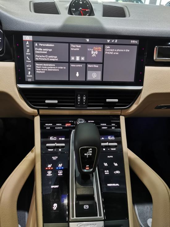 相比于外在新一代卡宴的内饰的变化颇有点意料之中的意味。不出所料的新卡宴采用了和新pananmera同样的设计理念,在大大提升了整体的档次感的同时也不失运动本色,位于中控台中央的12.3寸大屏替代了复杂的按钮,细腻的画质和灵敏的反应速度提供了非常愉悦的用户体验。仪表盘带有保时捷经典的风格,中间是机械式的转速表,而两侧则以液晶屏模拟显示。