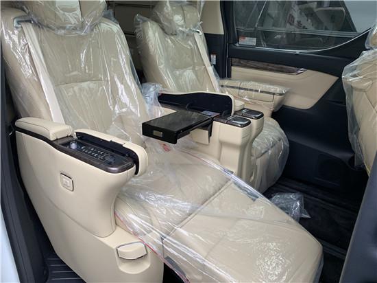 2019款丰田埃尔法(参数|图片)车内选用任何姿态,你依然可以看到日系车一向的雅致和整齐。内饰方面Alphard提供了7个座位。其中驾驶座具有8向电动调整、附3组记忆功能的电动座椅。最舒适的二排位置,搭载4向电动调整Ottoman头等舱座椅,拥有三面向头枕、独立扶手、扶手置杯架、多功能折叠桌,以及椅背最大78度仰角;前后共拥有450mm滑移长度与高度脚踏垫设计。首排与二排独立系统的影音播放器,让驾驶员与乘客都能拥有专属的影音主控权,在前座驾驶使用卫星导航的同时,后座乘客仍可享受视听娱乐。