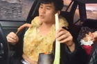 奇葩司机见过不少,这一次又刷新了认知,不仅在车上吃起了火锅,还放开双手吃串!
