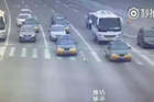 潍坊一位骑电动车行人,闯红灯横过马路,先被汽车撞倒摔地,随后又遭客车碾压,不遵守交通规则是要付出代价的!