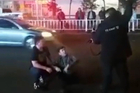 黑龙江鹤岗市两民警在现场执法,警察一只手录像取证一只手试图制服嫌疑人,另一嫌疑人面对另一名警察的枪口毫不畏惧继续阻挠执法。