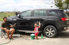 妈妈不在家,爸爸就带着女儿出门去洗车,可是小女儿洗车,爸爸却在旁边悠闲地享受。孩子真的不是买车送的吗?